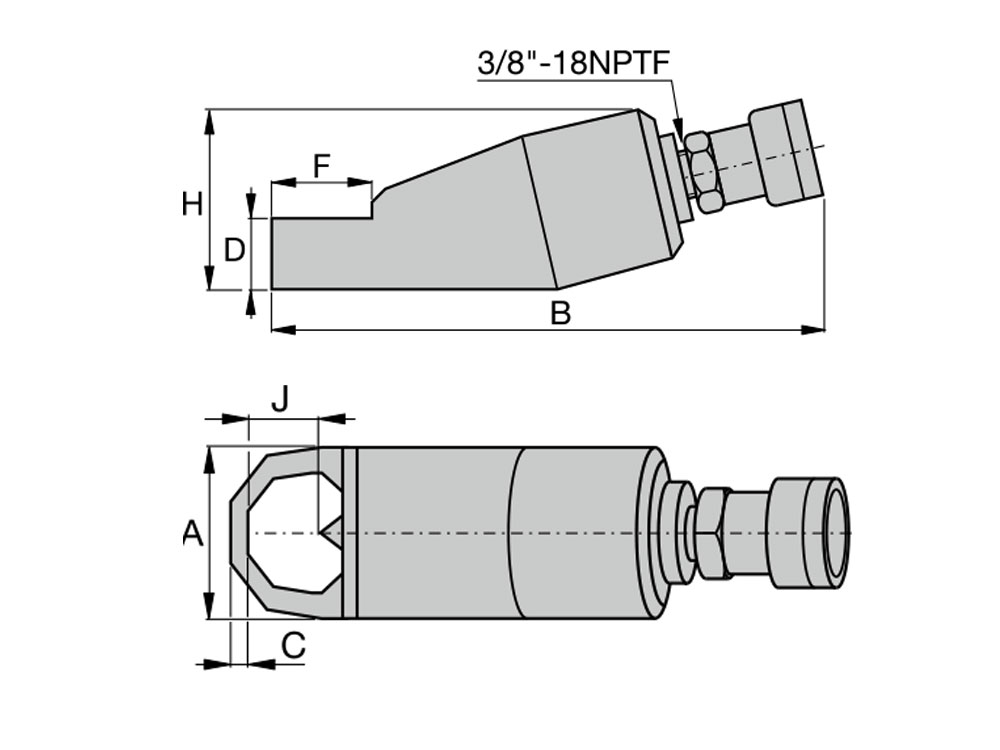 | Model | Siła, t | Zakres śrub | Zakres nakrętek, mm | Ilość oleju, cm3 | A, mm | B, mm | C, mm | D, mm | F, mm | H, mm | J, mm | Waga, kg |